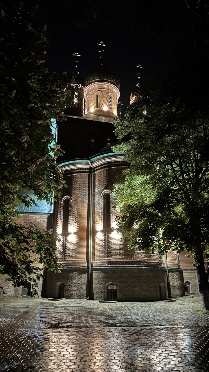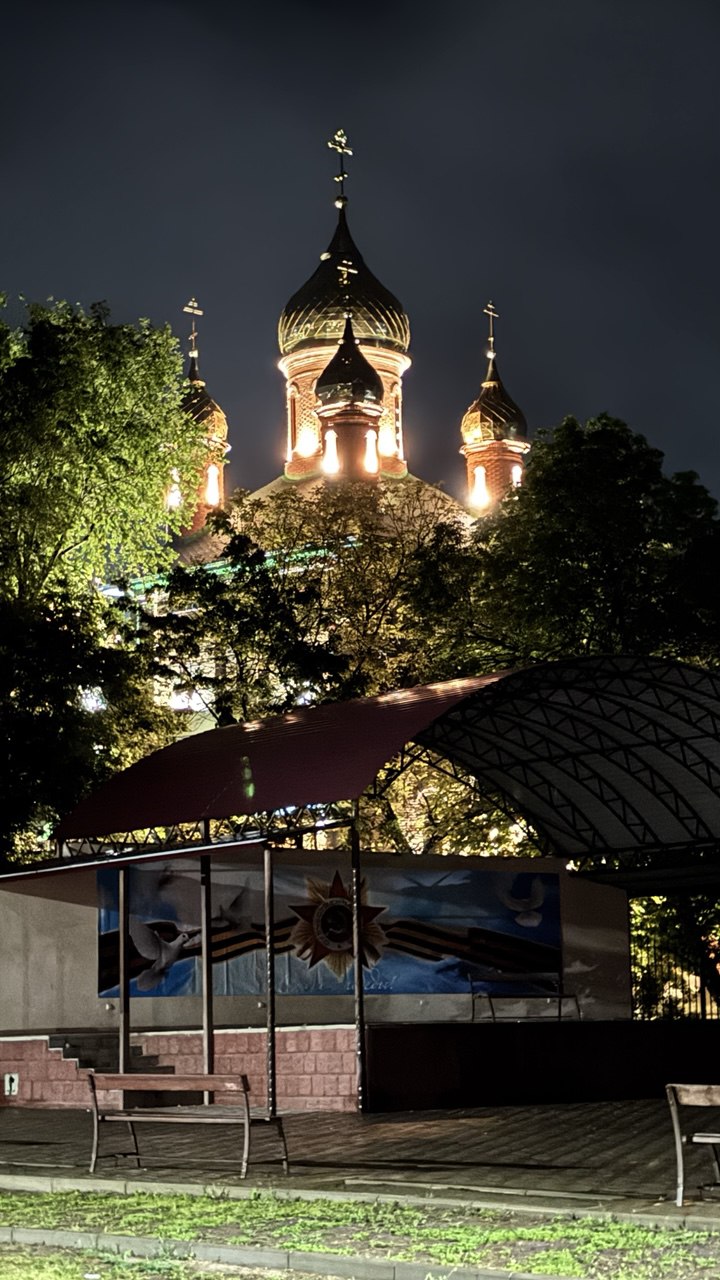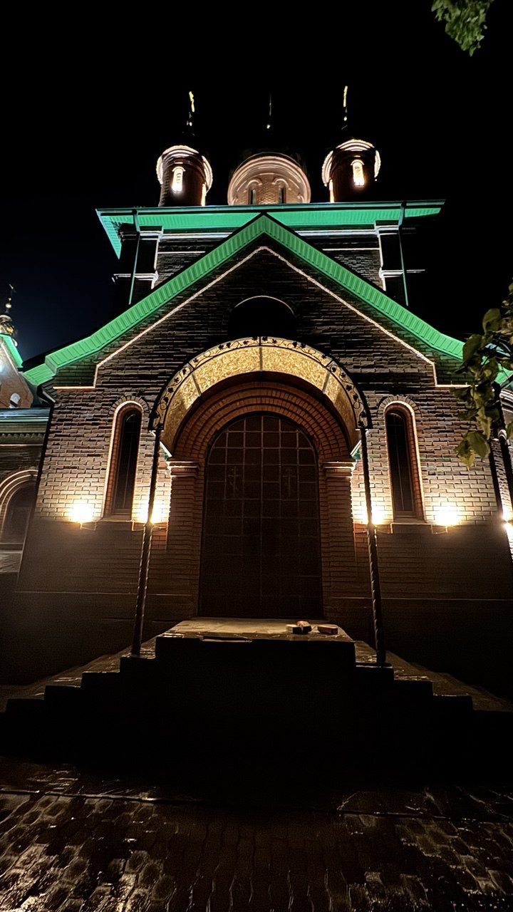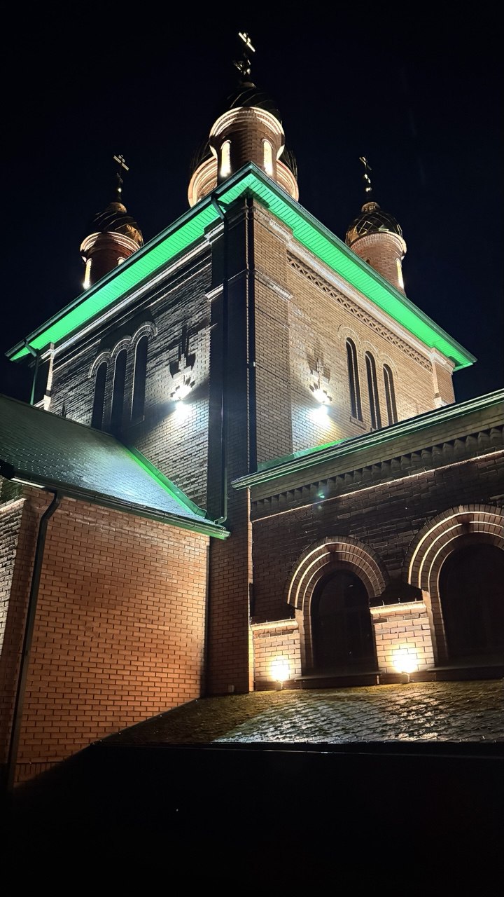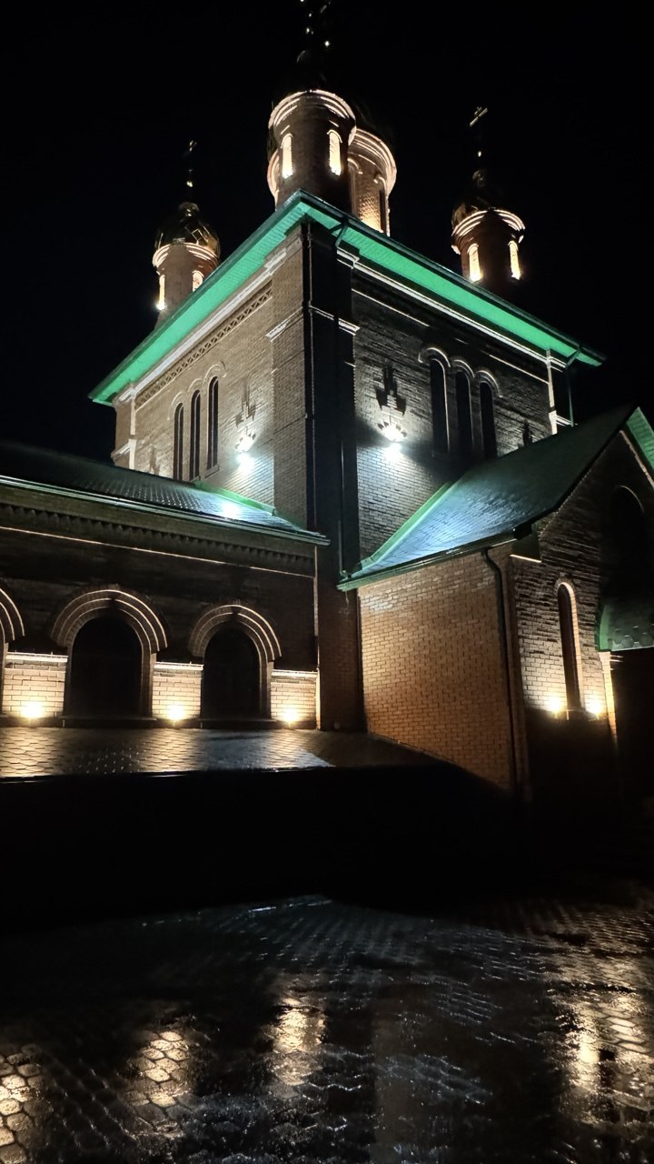 В станице Новотроицкой засияла в ночи Церковь Троицы Живоначальной.