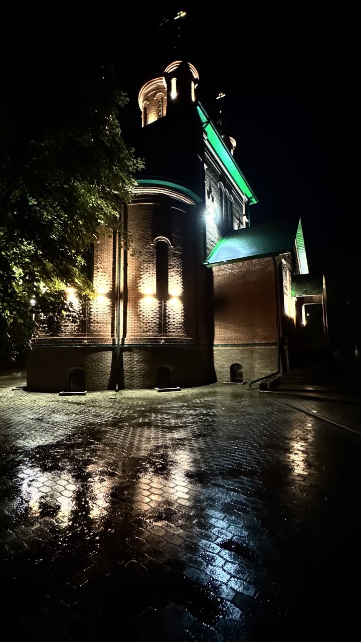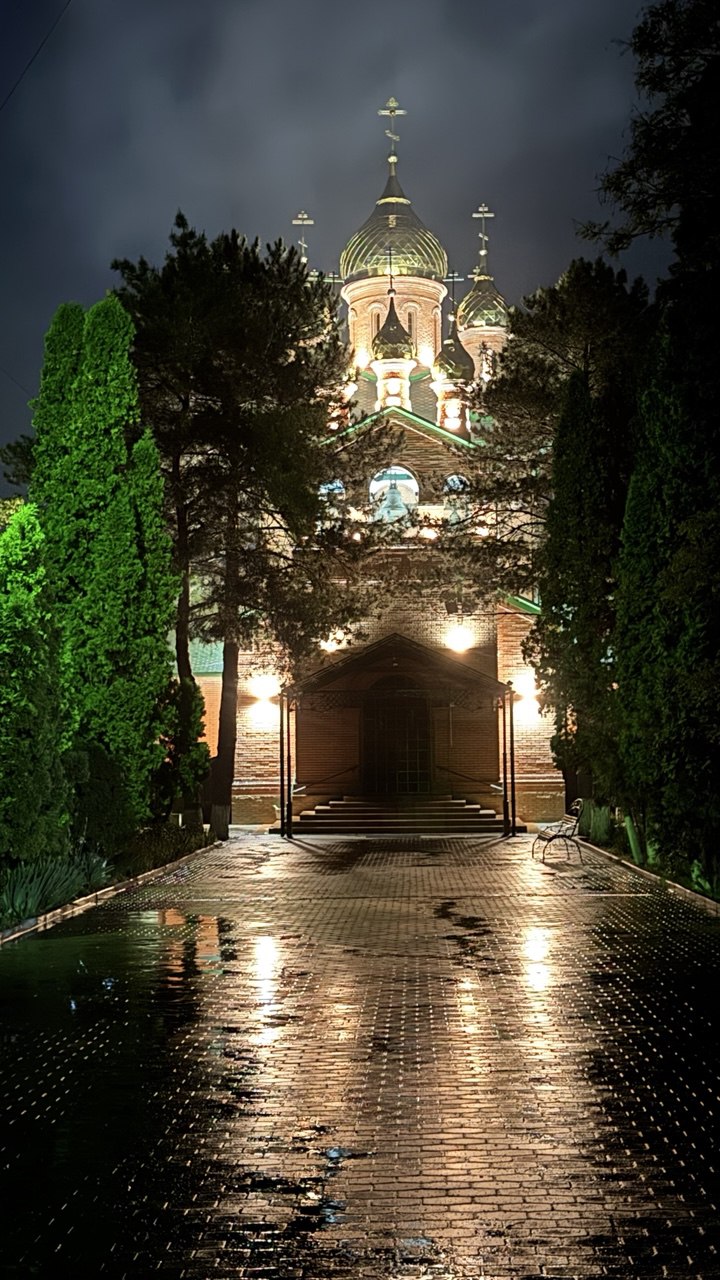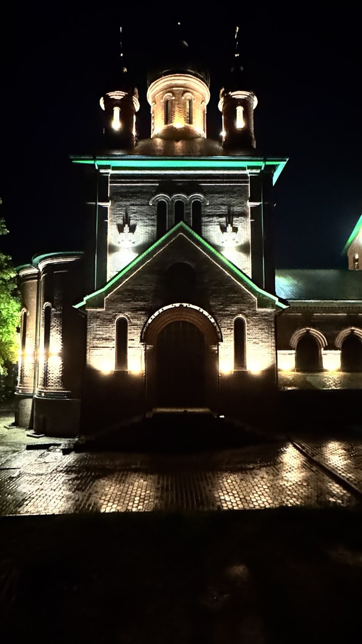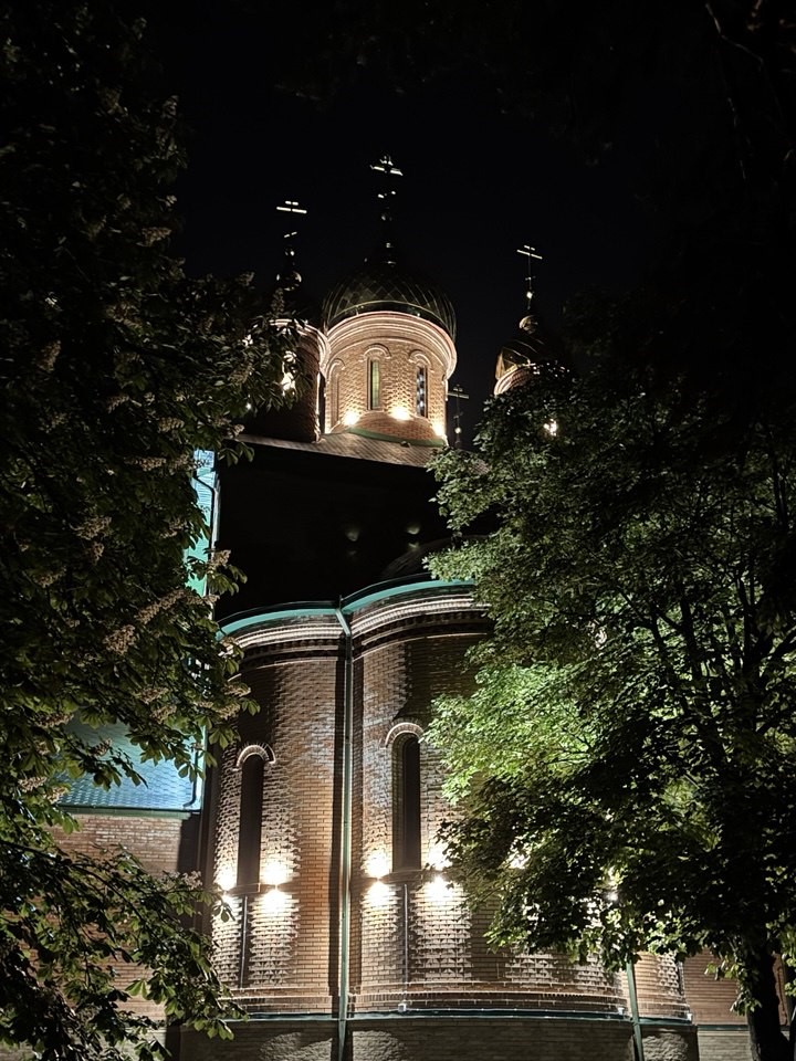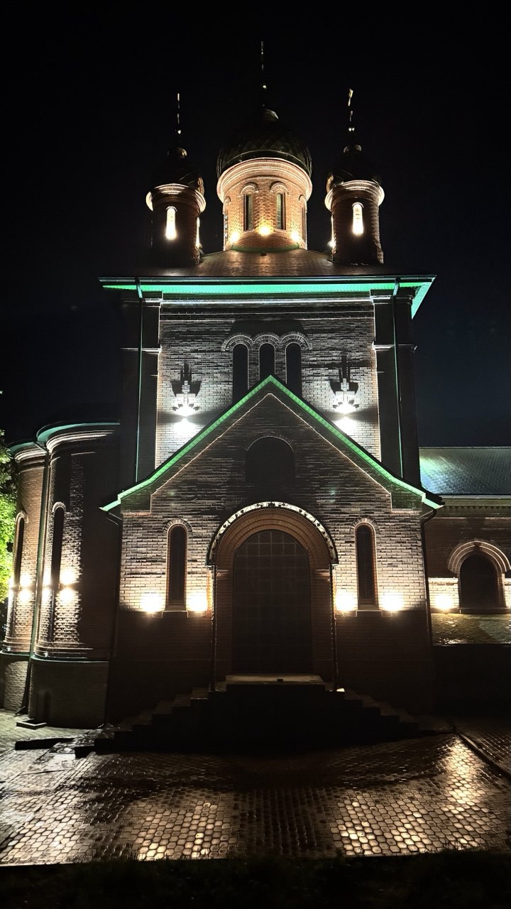 В станице Новотроицкой засияла в ночи Церковь Троицы Живоначальной.
