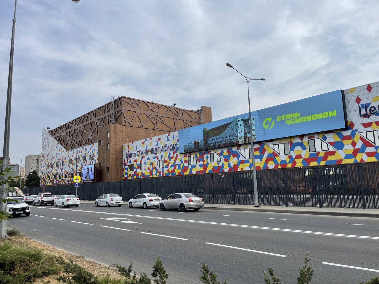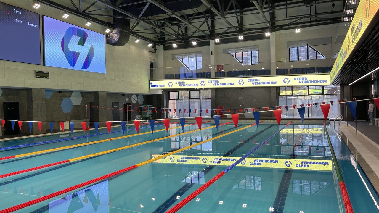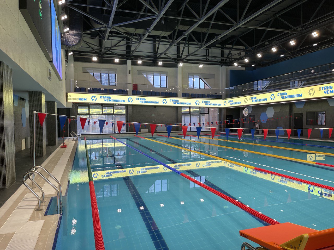 Общая площадь нового четырехэтажного здания - более 16 тысяч квадратных метров. Есть два бассейна: 50-метровый для спортивного плавания и 25-метровый для обучения детей. Эти объемные помещения требуют мощного и качественного звука. Для зрителей на трибунах мы установили 60 динамиков и две больших рупорных системы, управление которыми осуществляется из операторской. Озвучены также все зоны отдыха, фойе и входные группы.