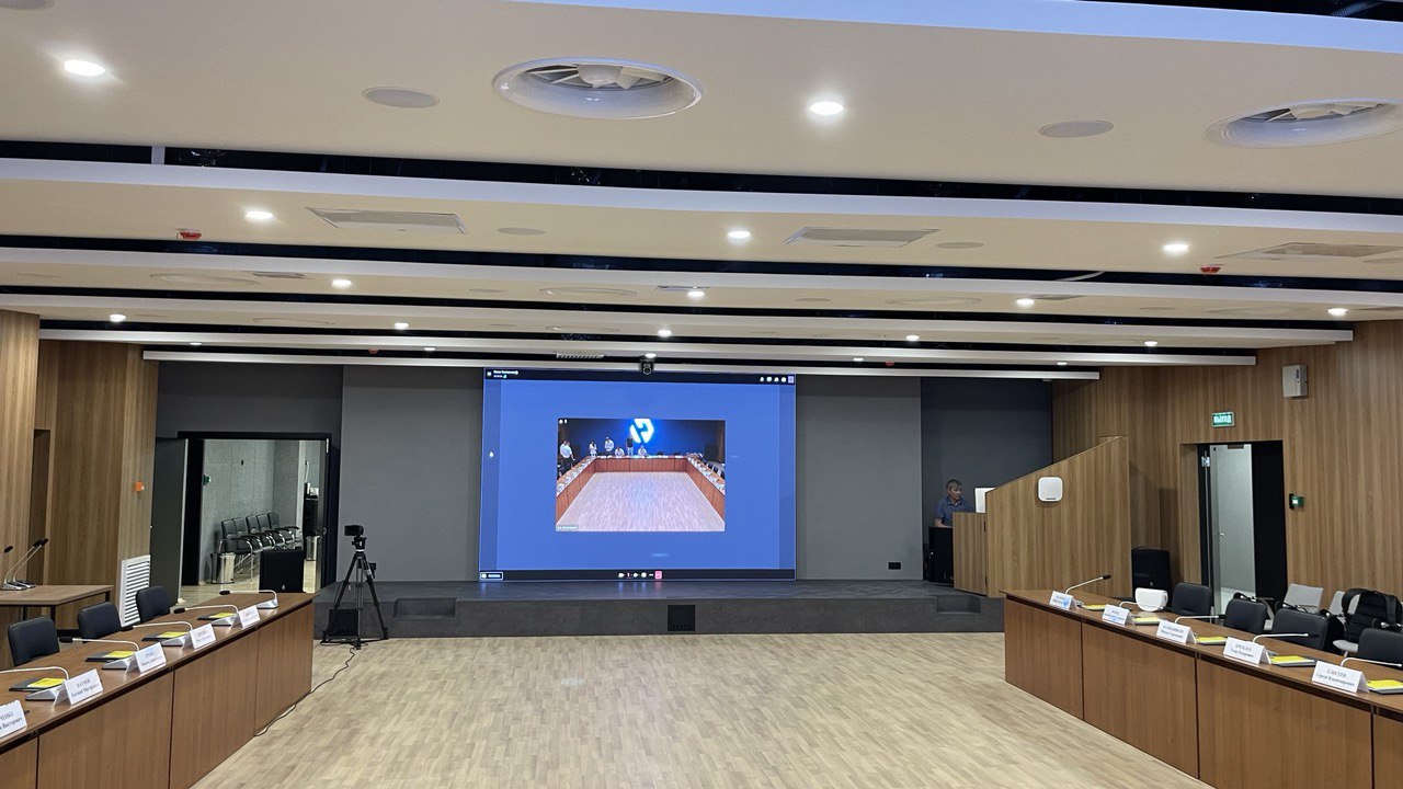 В конференц-зале вместимостью до 200 человек есть все необходимое для организации мероприятий. Здесь установлен большой мультимедийный экран площадью 10 квадратных метров, что позволяет эффективно проводить презентации, тренинги и деловые встречи. 20 потолочных динамиков и активные сабвуферы обеспечивают разборчивый и ясный звуковой сигнал.